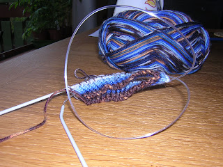 (They're having a chat) - I'm really pleased with them. My experiment of having lots of projects cast on at one time isn't really working - I think I could manage two, but no more. I'm hoping to get a bit of knitting done while we're in Spain - start knitting baby boots etc, so hopefully I'll be at a manageable level by the time we get back and get the internet connection working again.